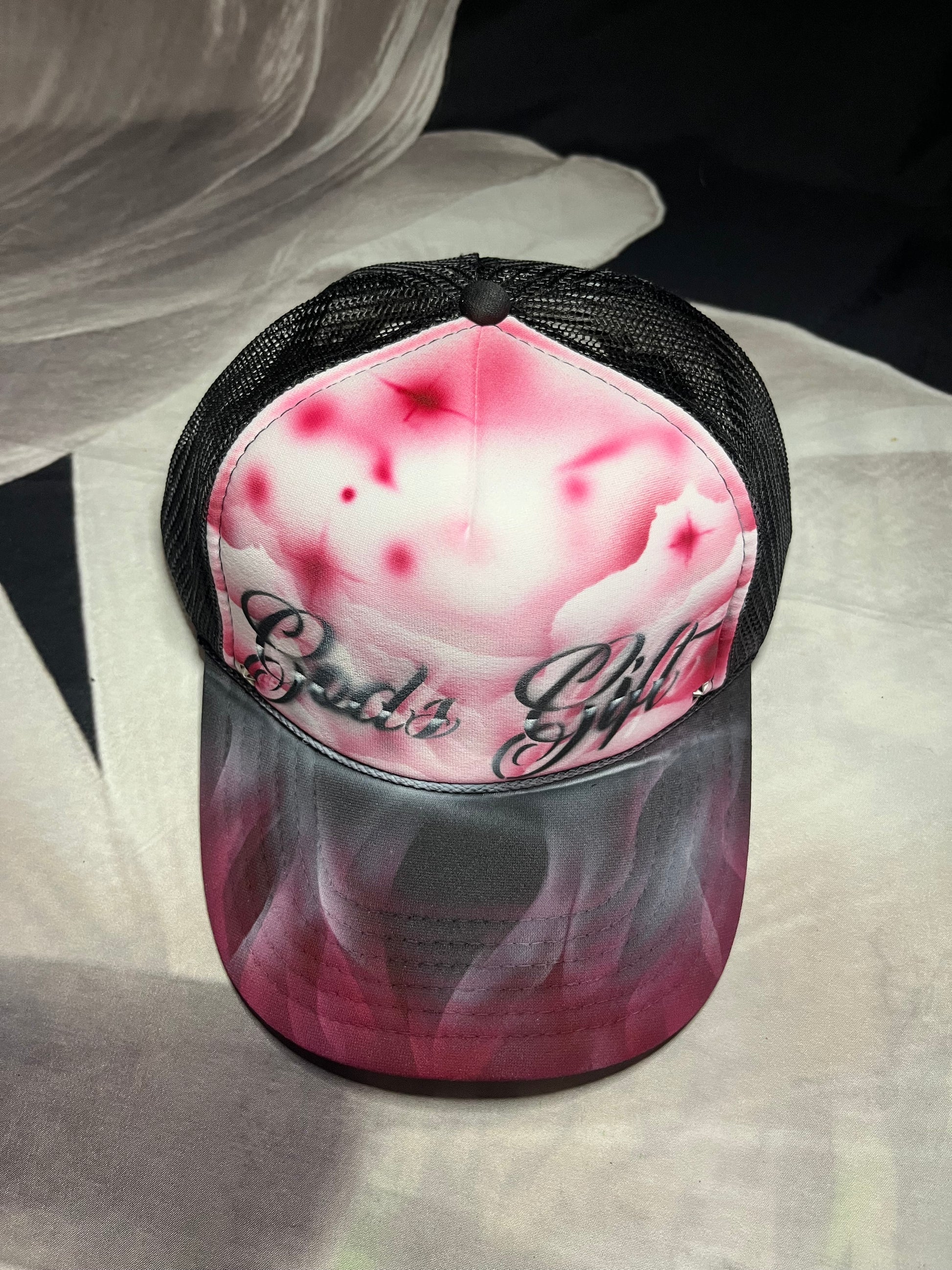 Red “Gods Gift” Airbrushed 5 panel SnapBack Trucker Hat