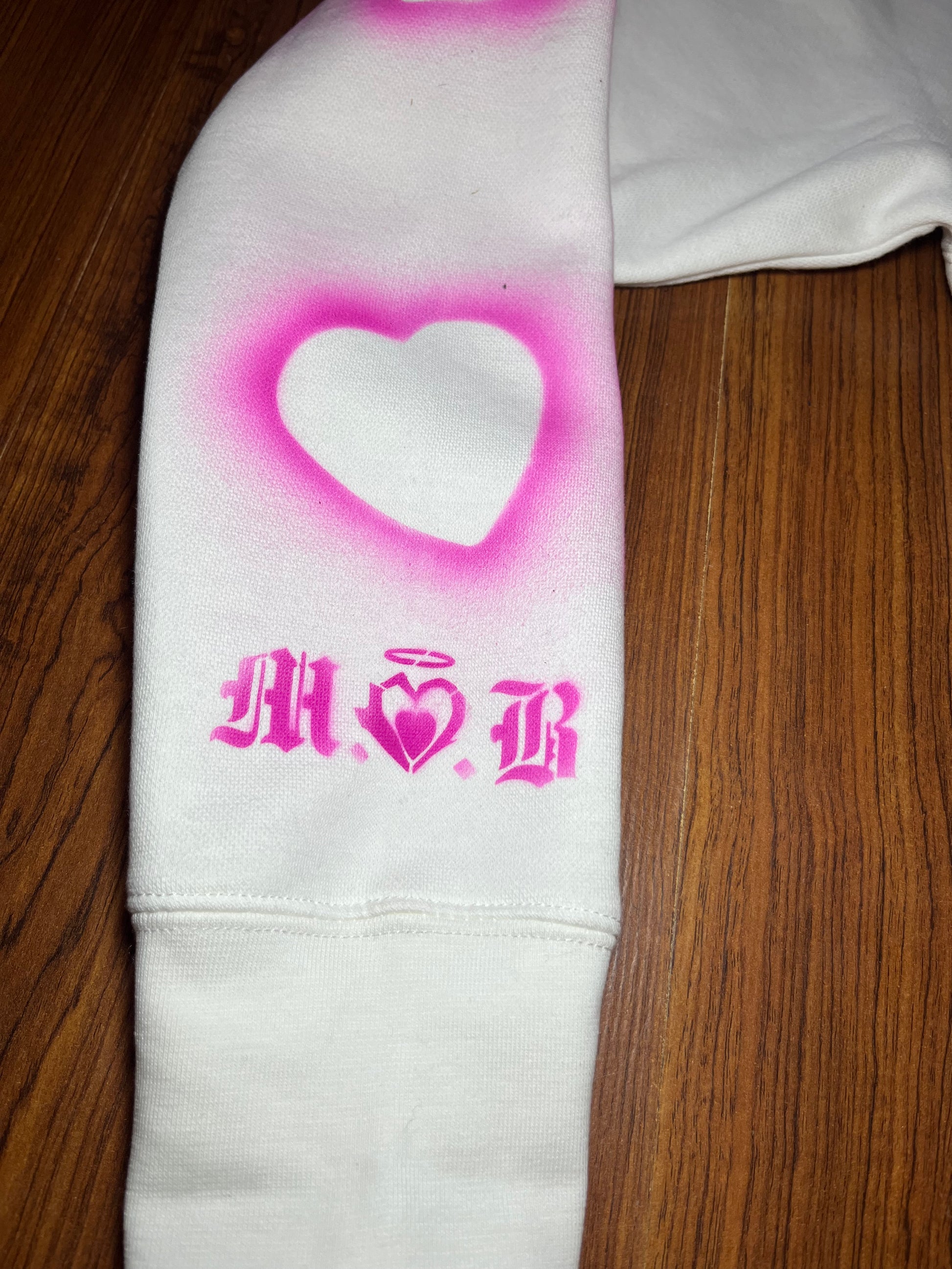 Custom blessed Mickey Mouse Airbrushed Hoodie covered with hearts on the sleeve and chest sure to make other people smile when they see it