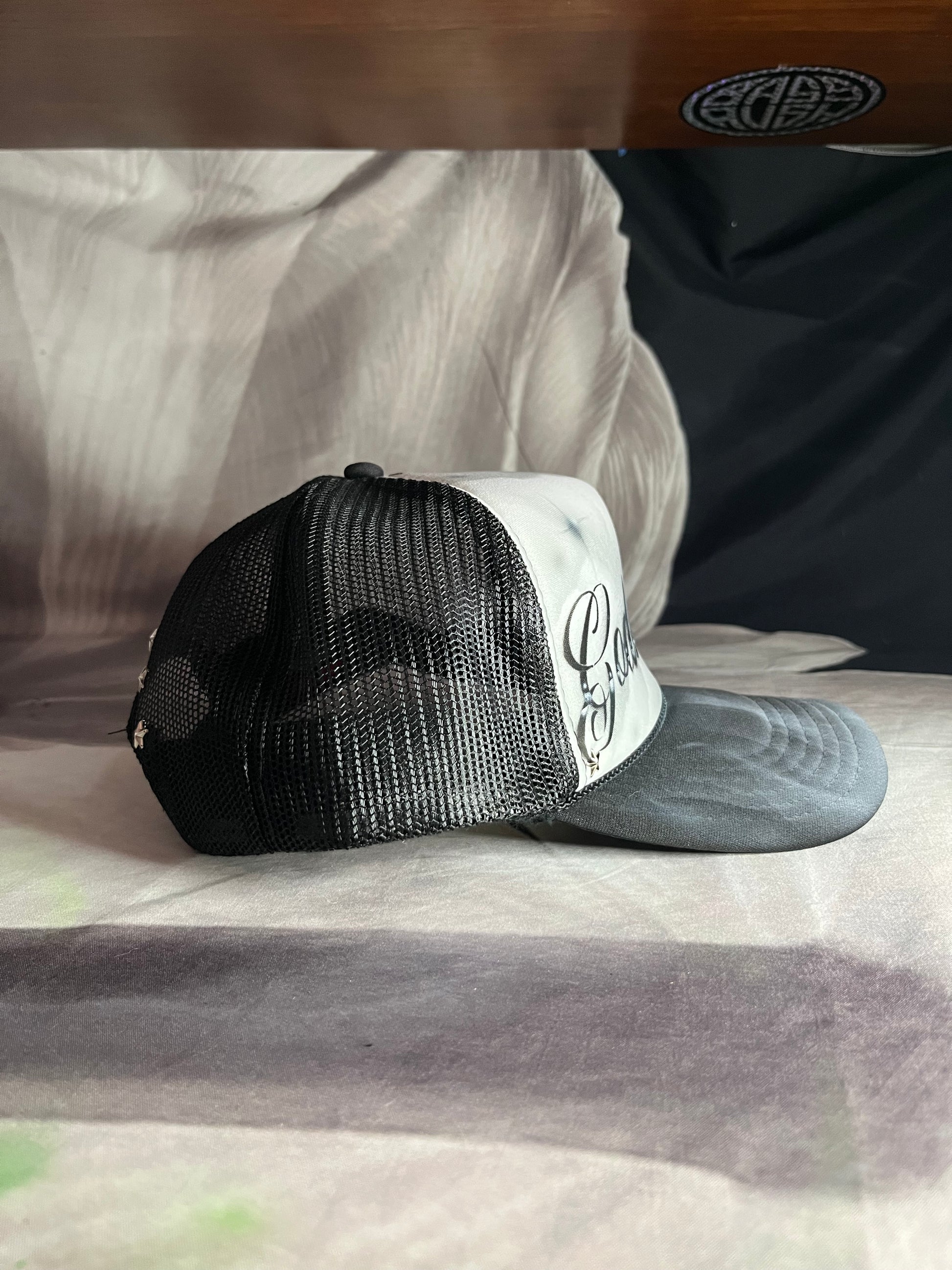 Smokey Grey “Gods Gift” Airbrushed 5 panel SnapBack Trucker Hat